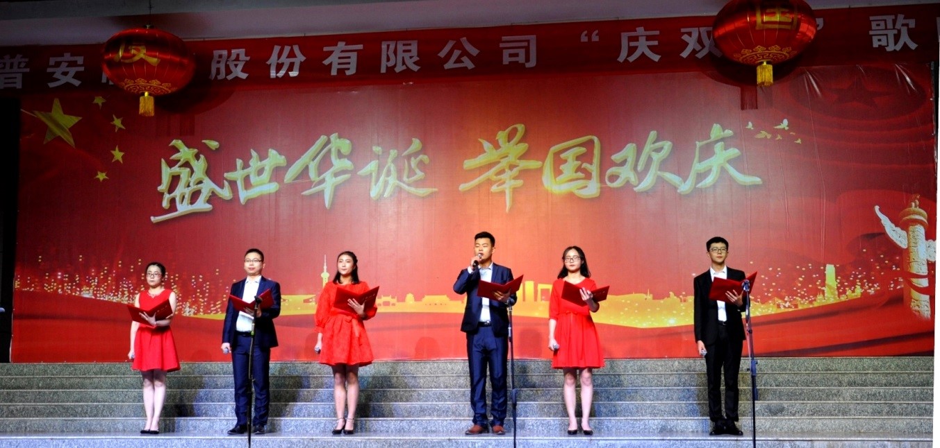 為慶祝建國71周年,豐富員工精神文化生活,不斷激發全體職工的愛國熱情,增強職工凝聚力和向心力。9月29日晚,甘肅普安制藥股份有限公司 “慶雙節”歌詠比賽活動在辦公樓前廣場隆重舉行,公司干部職工激情高歌,祝福祖國,祝福普安。