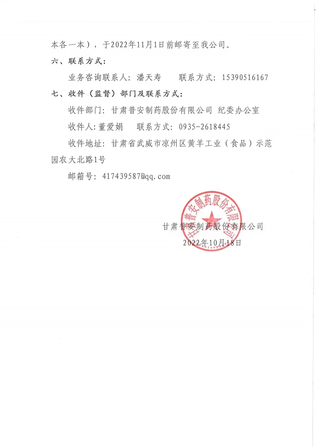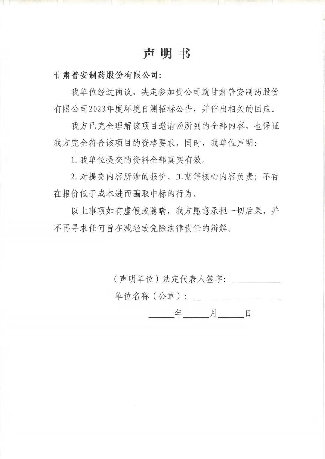 甘肅普安制藥股份有限公司2023年度環境自測第三方委托招標公告