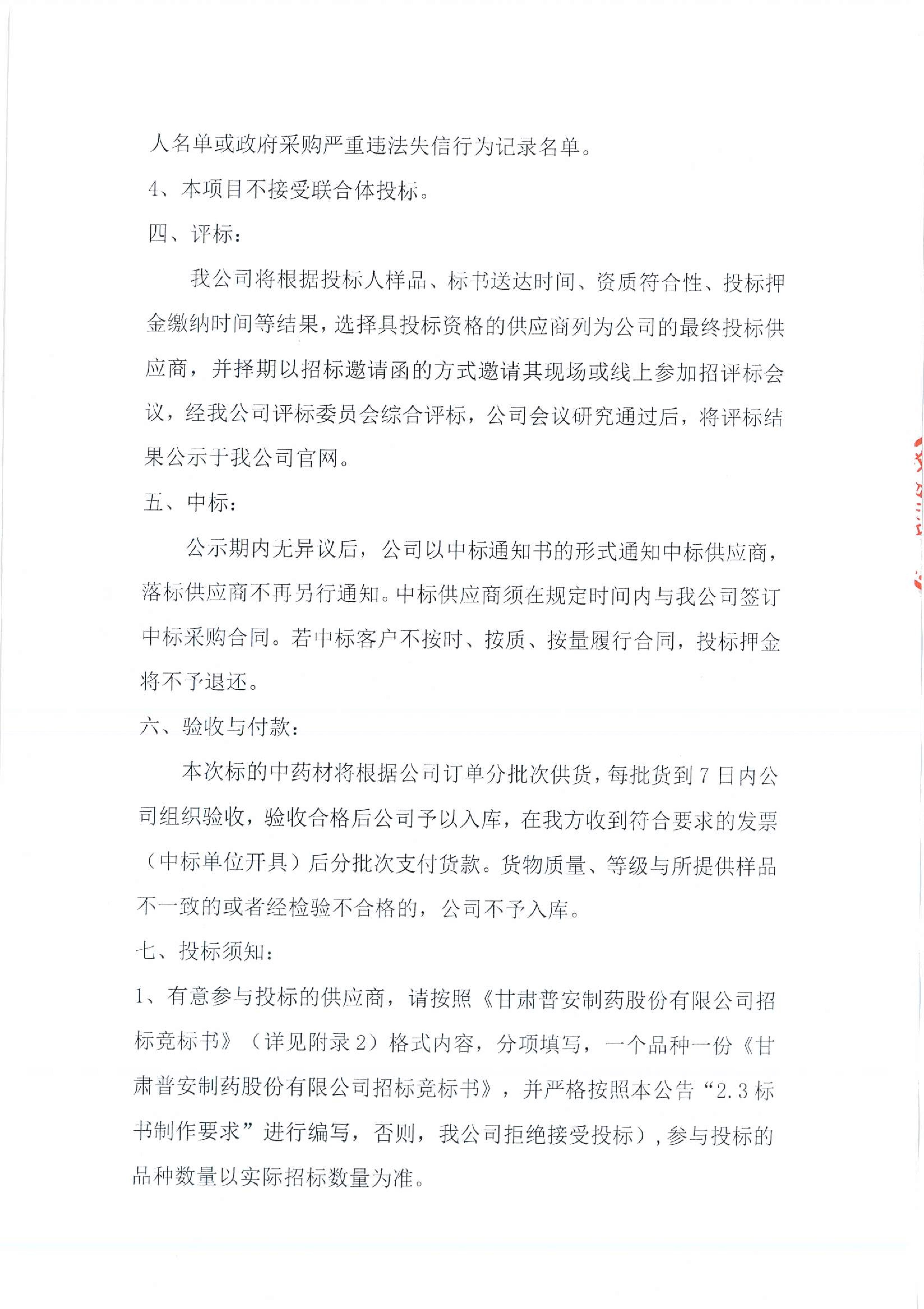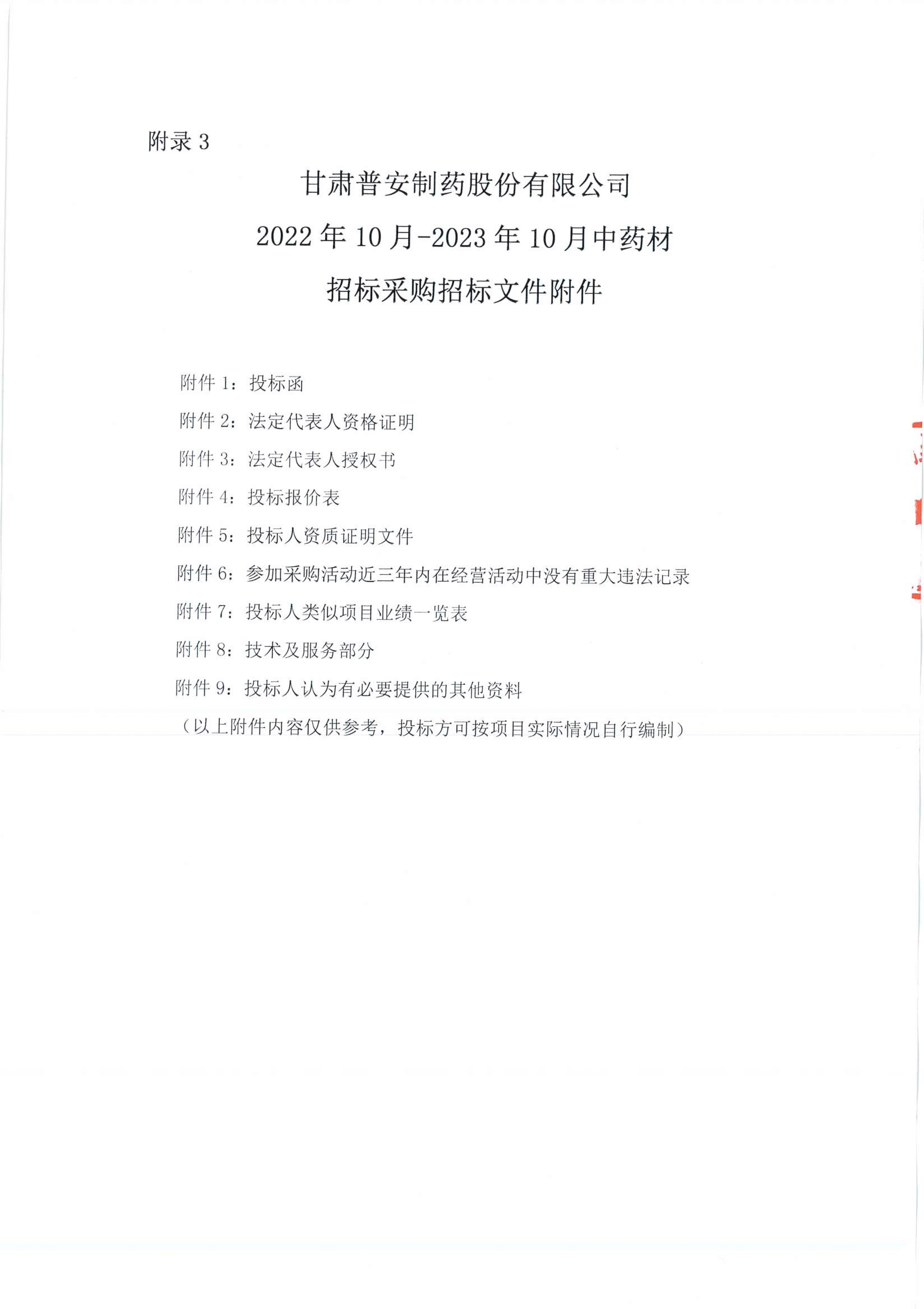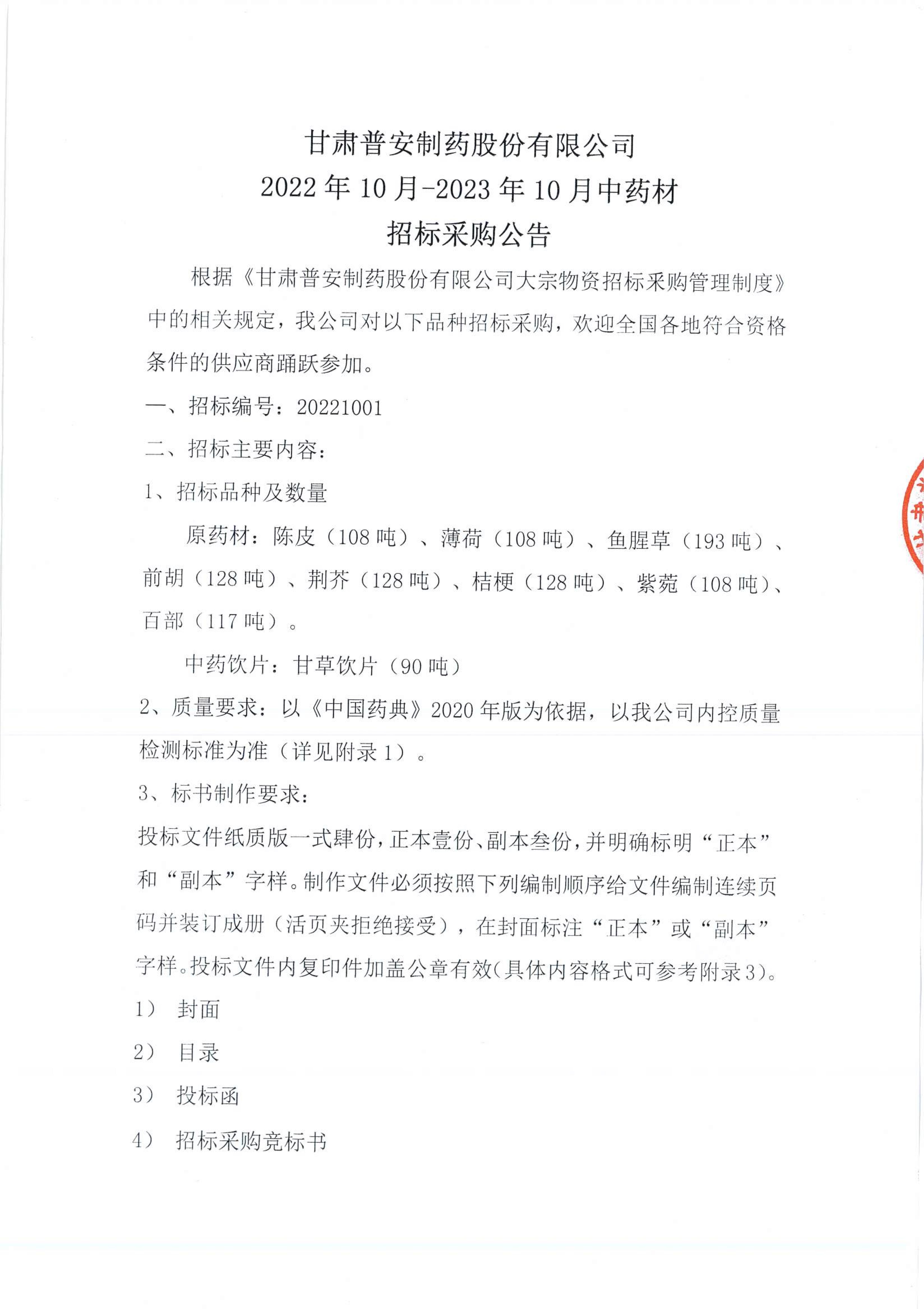 甘肅普安制藥股份有限公司2022年10月-2023年10月中藥材招標(biāo)采購(gòu)公告