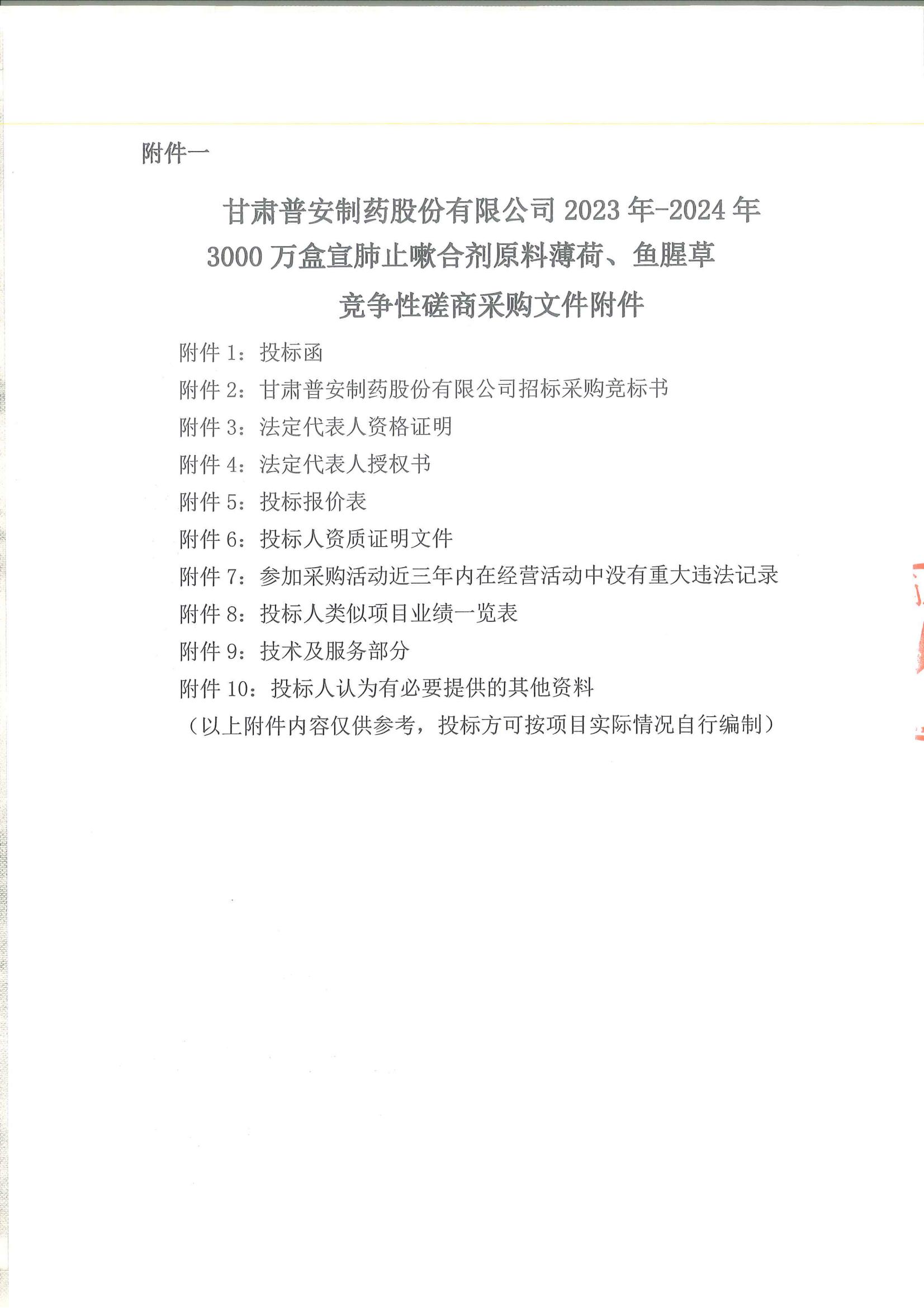 甘肅普安制藥股份有限公司2023年—2024年3000萬盒宣肺止嗽合劑原料薄荷、魚腥草采購競爭性磋商公告