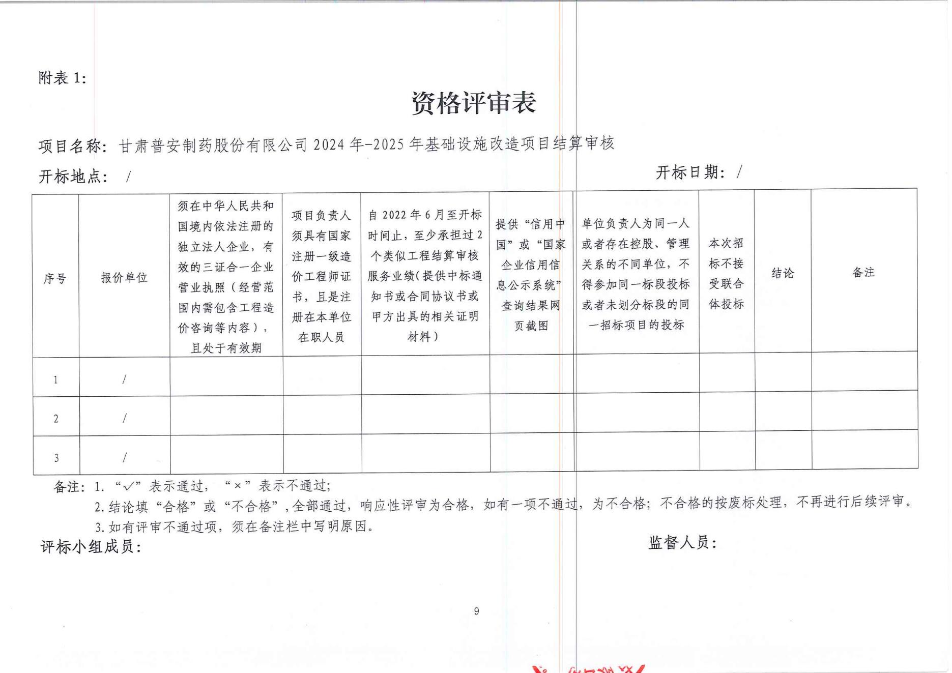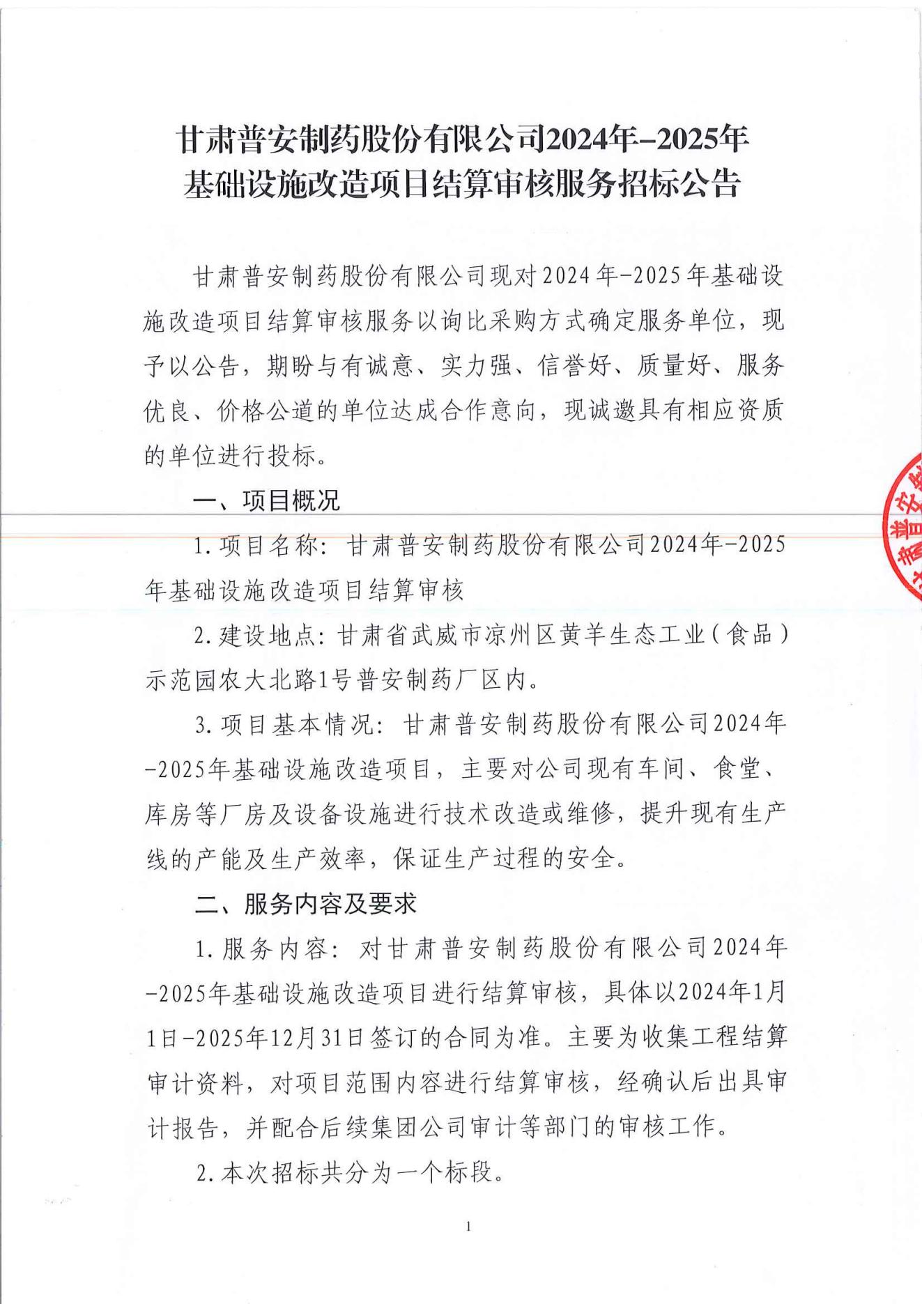 甘肅普安制藥股份有限公司2024年-2025年基礎(chǔ)設(shè)施改造項目結(jié)算審核服務(wù)招標(biāo)公告
